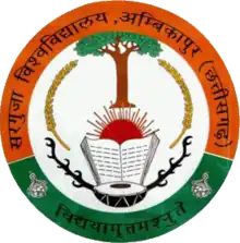 Sarguja University (Sant Gahira Guru University) is a state university located in Ambikapur, Chhattisgarh, India. It is a teaching-cum-affiliating university which affiliates 75 college and has 7 departments and 1 constituent college. It was established and incorporated by Chhattisgarh Vishwavidyalaya Adhiniyam No. 18 of 2008 on September 2, 2008. The University was established to serve the society through dissemination of knowledge in all the disciplines.[1][2]