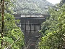 Sasanamigawa Dam is an arch dam located in Yamaguchi prefecture in Japan. The dam is used for power production. The catchment area of the dam is 91.5 km2. The dam impounds about 96 ha of land when full and can store 20100 thousand cubic meters of water. The construction of the dam was started on 1956 and completed in 1959.[1]