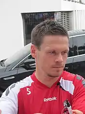 Sascha Riether (German pronunciation: [ˈzaʃa ˈʁiːtɐ]; born 23 March 1983) is a German former professional footballer who played as a right-back.[2] In addition to playing in the right back position, Riether has also played in defensive midfield, center back and right midfield positions throughout his whole career.[3][4]