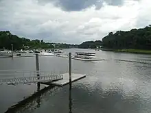 Panoramic view looking out from Saugatuck Bridge, Westport, CT, USA - 2012.jpg