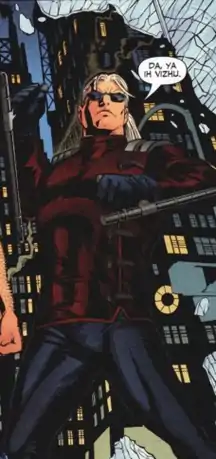 Brian Durlin, better known as Savant, is the spoiled heir to an enormous fortune. Savant had moved to Gotham City to become a self-styled vigilante. However, after Batman discouraged his involvement in vigilantism because of his lack of care to protect others, he turned his own formidable computer skills into a profitable blackmailing business. Savant was joined in this by an ex-Russian KGB agent named Creote.