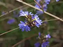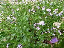 Scaevola albida, commonly known as pale fan-flower[2] or small-fruit fan-flower,[3] is a flowering plant in the family Goodeniaceae. It is a spreading perennial herb with pale blue or white fan-shaped flowers and obovate leaves. It grows in Queensland through eastern New South Wales and coastal areas of Victoria and Tasmania.