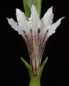 It differs from other Scaevola species that have flowers in axillary spikes, by having hairs on the outside of the corolla, which are yellow to almost golden.[5]