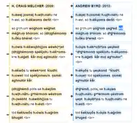 Some of the differences between the texts are just varying spelling conventions: w and u̯, for example, are only different ways to indicate the same sound, a consonantal u. However, many other differences are to be explained by widely diverging views on the phonological and morphological systems of PIE.