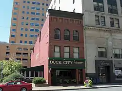 The building was built by Fritz T. Schmidt in 1896 to house his wine and liquor business, which was known as Fritz T. Schmidt and Sons.[3] They produced their own wine at a west end location known as "Blackhawk Vineyards." It was located along Blackhawk Creek.[4] Some of the buildings, including the Schmidt's house, are extant. During Prohibition the family moved into real estate and insurance.[2] In the late 1970s and 1980s the building housed an upscale restaurant called J.K. Frizbee's.[5] Duck City, another upscale restaurant, occupies the building now.