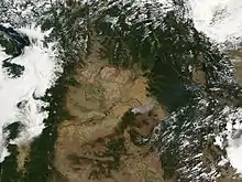 The School Fire was a wildfire that occurred in the US state of Washington in August 2005, so named due it to beginning in School Canyon.[1] The fire originated in the Umatilla National Forest in southeastern Washington, in Columbia and Garfield Counties. The School Fire was detected from space by NASA's Terra satellite.[2] The fire burned around 51,892.13 acres (81.08 sq mi; 21,000 ha),[3] destroying over 100 houses and 100 outbuildings. The largest wildfire of 2005 in the contiguous United States, the School Fire's smoke was seen as far away as Walla Walla. Its total damage was estimated at $15 million.[4]