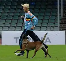 Schutzhund (/'ʃʊtshʊnt/, German for "protection dog"[lower-alpha 3]), currently known competitively as IGP[lower-alpha 2] and previously as IPO,[lower-alpha 1] is a dog sport that tests a dog's tracking, obedience, and protection skills, and evaluates if a dog has the appropriate traits and characteristics of a good working dog.[1] It was developed in Germany in the early 1900s as a suitability test for German Shepherds, but soon became the model for training and evaluating all five of the German protection breeds, which included Boxer, Dobermann, Giant Schnauzer, and Rottweiler. Though any breed of dog can participate, today the sport is dominated by German Shepherds and the Belgian Shepherd breed. Dog owners and handlers participate in Schutzhund clubs as a group activity for training the dogs, and clubs sponsor trials to test the dogs and award titles. The best dogs can qualify to participate in national and international level championships.