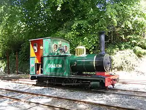 Sea Lion is a steam locomotive built in 1896 to supply the motive power to the Groudle Glen Railway on the Isle of Man and the locomotive still provides the main traction there today. The locomotive was built by W.G. Bagnall & Co., Stafford and delivered to the line in May of that year, providing sole motive power until joined in 1905 by sister locomotive Polar Bear. When delivered to the railway, the locomotive carried an olive green livery with vermilion and yellow lining and the name carried on the side water tank in gold leaf with blue shadowing, with distinctive round "spectacle" cab windows back and front. These were changed over to rectangular windows very early in the engine's career to improve driver visibility however. One distinctive feature was a displacement lubricator mounted atop the highly polished brass dome. The locomotive was fitted with unusual valve gear patented by E.E. Baguley and is one of only four locomotives to remain in existence with this (the others being Isabel at Amerton Railway, Rishra on the Leighton Buzzard Narrow Gauge Railway, and an unknown Bagnall locomotive on display in India). By the 1920 season the locomotive was deemed too costly for repair and the line purchased two battery electric locomotives that inherited their steam engine names. The modern engines proved to be financially disastrous and within a few years "Sea Lion" had been returned to the works for re-build. It continued to operate the line until closure at the outbreak of the Second World War in 1939.