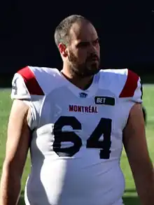 Jamieson was drafted in the third round, 20th overall, in the 2016 CFL Draft by the Montreal Alouettes and signed with the team on May 25, 2016.[4] He returned to Western University to play his final year of eligibility in 2016 and re-joined the Alouettes in 2017 where he played in his first career game against the Ottawa Redblacks in the Labour Day Classic on August 31, 2017.[5] Jamieson played in eight regular season games during his rookie year in 2017. He played in 16 games in 2018 and then 15 games in 2019. He did not play in 2020 due to the cancellation of the 2020 CFL season. He played in eight games in 2021. Jamieson suffered a knee injury on June 23, 2022 and missed the next three games.[6] He was activated from the six-game injured reserve list and return to action on July 28, 2022.[7] Later in the season Jamieson was diagnosed with a torn ACL in mid-October, ending his season.[8]