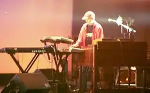 Ford was a member of Sydney-based band, Pleasure Master in 1986 on guitar and vocals.[9] Millo worked with Jon English on the 1978 TV series Against the Wind soundtrack,[10] and the associated single "Six Ribbons" peaked at No. 8 on the national charts;[7] both the album and its title track were translated as "Mot Alla Vindar" and peaked at No. 1 on the Norwegian albums and singles charts respectively.[11] Millo also released solo albums Epic III in November 1979, Human Games in March 1983 and Oceans of the Mind in 2002.[10] He became better known through his television and movie soundtrack production winning six industry awards for work in The Lighthorsemen (1987), G.P. (1989), Brides of Christ (1991, two awards), See How They Run (1999) and Changi (2001).[12] Original soundtracks released include Against the Wind (1978, with Jon English), World Safari II (1984), A Fortunate Life (1986), The Lighthorsemen (1989) and Brides of Christ (1991).[10] Sebastian Hardie briefly reformed in 1994 – with the Plavsic brothers, Millo and Pilt – to perform at a progressive rock festival, ProgFest, in Los Angeles,[3][13] which was recorded and eventually released as Sebastian Hardie – Live in L.A. in 1997.[4][13] They played material from Four Moments, Windchase, Symphinity, and Epic III.[13] At the Gimme Ted benefit concert on 10 March 2001 Sebastian Hardie performed "Openings" and then backed former member, Jon English, for two of his songs.[14] Another reunion occurred in 2003 when supporting the British art rock band, Yes on their Australian tour.[15]