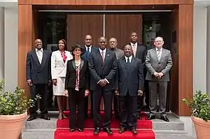 | Member parties | Democratic Party (DP) National Alliance (NA) Frans Richardson Patrick Illidge Romain Laville |