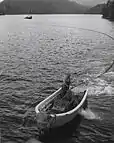 Purse seining ![]() Modern French tuna purse seiner using a power block. The helicopter is used to search for tuna schools. ![]() Skiff tuna purser ![]() Seine skiff setting the net ![]() Brailing the salmon on board Seining in the past ![]() Early steam seine netter ![]() Manually seining salmon on Columbia River, Oregon, 1914 ![]() Hauling in a beach seine using horse teams 1938 ![]() R/V John R. Manning starting a purse seine set in the tropical Pacific Ocean, ca. 1950. |