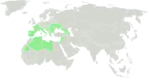- Southeastern Europe: Albania, Bosnia and Herzegovina, Bulgaria, Crete, Crimea, Croatia, Cyprus, Greece, Italy, Malta, Romania, Sardinia, Serbia, Sicily, Ukraine
