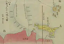 - A Chinese map of Asia, as well as the Sangoku Tsūran Zusetsu map compiled by Japanese cartographer Hayashi Shihei[46] in the 18th century,[45] showing the islands as a part of China.[45][47]