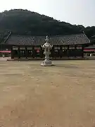 There is a camellia forest behind the main hall (daeungjeon) of the temple. The trees are roughly 500 years old, and are designated by South Korea as a natural monument. The temple is known for its worship of the Ksitigarbha Bodhisattva, and for its annual camellia festival.