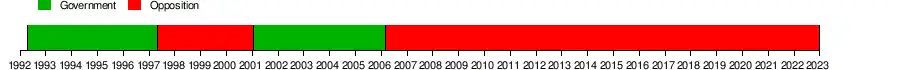 | Year | Leader | Popular vote | % | # of seats | Government |