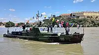 (РПЧ - речни патролни чамац; RPČ - rečni patrolni čamac) River patrol boat of the Serbian River Flotilla, armed with twin M71 20 mm anti-aircraft guns. The ships were built in Regensburg in 1953 for the United States Rhine River Patrol later transferred to the Yugoslav Navy's river flotilla. Today it serves mostly in a ceremonial role as the flagship of the flotilla. | |