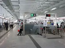 Shenzhenbei (Shenzhen North) Railway Station (Chinese: 深圳北站; pinyin: Shēnzhèn Běi Zhàn; Jyutping: sam1 zan3 bak1 zaam6) is one of the four large intercity railway stations of Shenzhen, located in Longhua District.[2] It has 11 platforms and 20 lines. It is an interchange station between the Guangzhou–Shenzhen–Hong Kong Express Rail Link, the Hangzhou–Fuzhou–Shenzhen High-Speed Railway, future Shenzhen–Zhanjiang high-speed railway[3] and the Shenzhen Metro Lines 4, 5 and 6.[4][5][6][7] Construction started in 2007 and was completed in June 2011.[8][9] The Line 4 and Line 5 platforms opened on 22 June 2011, CRH platforms opened on 26 December 2011 and Line 6 platforms opened on 18 August 2020.