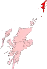 The Shetland constituency was created at the same time as the Scottish Parliament, in 1999, to cover the Shetland Isles council area. The constituency is protected in law due to its geographical separation from other parts of Scotland, and therefore its boundaries are not subject to review.[2] In the House of Commons of the British Parliament at (Westminster), the council area is covered by the Orkney and Shetland constituency, which also covers the Orkney Islands council area.[3]