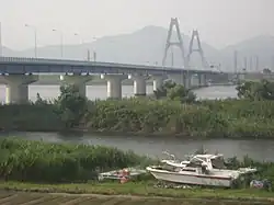 Shikoku Saburo Bridge is a bridge in Tokushima Prefecture, Shikoku that spans the Yoshino River. It joins Ojin-cho on the north of the river to Fudouhigashi-cho on the south of the river. The Bridge is 910.5 metres in length and 14 metres in width, with a two-lane highway running atop. The bridge was opened to the public in 1998.