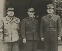 Defense Minister Shin Song-mo with Deputy Minister of Defense Jang Kyung-geun, and Director Chung Il-kwon (from left), standing side by side at the Naval Headquarters after the 3rd Army Operation Agreement. Chung Il-kwon was shortly after being issued by the Commander-in-chief of the Army, Naval and Air Force.
