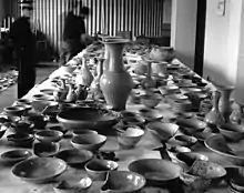 Around 1981 the reconstructed ship and many of its artifacts were displayed in the Mokpo Conservation Institute for Maritime Archaeological Finds in Mokpo.[3] Subsequently, many artifacts were divided between several regional museums, although most were kept in storage. In commemoration of the 40th anniversary of the excavation, the National Museum of Korea held a special exhibition dedicated to the shipwreck in 2016. As 2010s, the ship and most of its related artifacts are displayed the National Research Institute of Maritime Cultural Heritage (the institution is also known as the National Maritime Museum in Mokpo).[6][7][8][9]