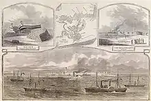 The rebels built eleven casemates, and our forces have built two more since they have occupied the fort. The casemates are bomb-proof. The fort is at present but one tier high. It is provided with Dahlgren's 9-inch [229 mm] shell guns of very heavy calibre and in perfect order, and they are hourly expecting sixteen more very heavy guns from Pensacola. Besides this, Captain Manning's battery has landed five of their steel rifled cannon, with the Sawyer projectile. There were six of these guns on board the Constitution, but unfortunately, one of them was lost overboard in removing them from the transport. It is hoped that they will be able to recover it, as a buoy floats right over the spot where it fell.     Harper's Weekly, January 1862