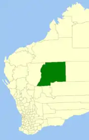 The Shire of Wiluna is a local government area in the Goldfields-Esperance region (since 2021)[2] of Western Australia, about 950 kilometres (590 mi) northeast of the state capital, Perth. The Shire covers an area of 182,155 square kilometres (70,330 sq mi), and its seat of government is the town of Wiluna.