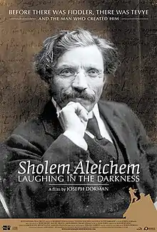 Sholem Aleichem: Laughing in the Darkness was written and directed by Joseph Dorman. The film debuted in Manhattan on July 8, 2011, with a run-time of 113 minutes.[1] The documentary focuses on both the life of Yiddish writer Sholem Aleichem, as well as 19th century Eastern European Jewish culture, which shaped Aleichem and his works.[1][2] The film details Aleichem's early life in the Tsarist Russian Empire, his surviving the 1905 Kiev pogrom and subsequent emigration to New York, his initial struggles in New York and subsequent return to Eastern Europe, and his return - shortly before his death - to New York, to significant acclaim.[1][3][4] The documentary also explores his pioneering role in creating Yiddish-language literature. Although Aleichem is best known for his stories about Tevye, which would go on to be adapted into the musical Fiddler on the Roof, the documentary details his other works as well,[2][3] and draws parallels between Aleichem's personal desire for riches and that of Tevye.[1]