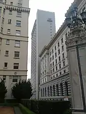 The building had a glass elevator leading to a restaurant at the top, from which Gehr shot the entire film.[7] He began by riding up and down the elevator, making notes and sketches about the angles at which he could position the camera. He filmed between 12:00 p.m. and 1:30 p.m. to minimize reflections on the elevator glass and shadows cast by surrounding buildings. Gehr filmed without asking permission from the hotel, not expecting to need it. After Gehr was asked to leave, he had his friend Adam Hohenberg request permission. The hotel denied their request, primarily because it would interfere with the restaurant's lunchtime rush. Gehr ended up shooting the film discreetly and was kicked out multiple times during production. He shot on 16 mm film with a Bolex camera that had to be hidden under his coat. Because he was unable to set up a tripod, the weight of the handheld Bolex became a major obstacle which prevented Gehr from filming some of the shots he had originally planned.[4][6]