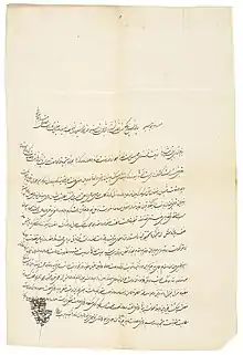 Firman of Fath-Ali Shah Qajar to General Gardane wherein, amongst others, suggested military operations against the Russians are written, and an indication that the Shah expects Gardane to report shortly an end to hostilities and the capture of Field Marshal Gudovich, December 1808, dated November-December 1808