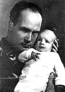 ![]() Rascher posing with one of the children kidnapped by his wife | |
