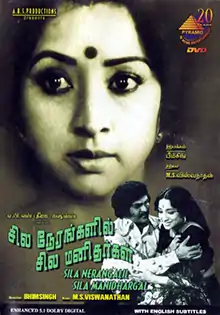 Sila Nerangalil Sila Manithargal (transl. Some people at some moments) is a 1977 Indian Tamil-language romantic drama film directed by A. Bhimsingh and written by Jayakanthan. Based on Jayakanthan's novel of the same name, it stars Lakshmi and Srikanth, with C. K. Nagesh, Y. G. Parthasarathy, R. Neelakantan, Sukumari and S. Sundari Bai in supporting roles. The film revolves around a girl from an orthodox family whose life changes after a one-night stand.