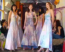 Silk is a natural protein fiber, some forms of which can be woven into textiles. The protein fiber of silk is composed mainly of fibroin and is produced by certain insect larvae to form cocoons.[1] The best-known silk is obtained from the cocoons of the larvae of the mulberry silkworm Bombyx mori reared in captivity (sericulture). The shimmering appearance of silk is due to the triangular prism-like structure of the silk fibre, which allows silk cloth to refract incoming light at different angles, thus producing different colors.