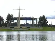 The construction of Simón Bolívar Park started in 1966. In 1968 the city of Bogotá built a temple to commemorate the 39th International Eucharistic Congress to which the pope Paul VI was a part of. This temple was named Eucharistic Temple. At the time the lake already existed as a natural feature. In 1986 a second temple was built for the reception of Pope John Paul II. The park was officially named under the Law 31 of 1979 in commemoration of the bicentennial of the birth of Latin American leader Simón Bolívar.