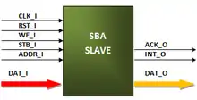SBA is an application and a simplified version of the Wishbone[2] specification. SBA implements the minimum essential subset of the Wishbone signals interface. It can be connected with simple Wishbone IP Cores. SBA defines three types of cores: masters, slaves, and auxiliaries. Several slave IP Cores were developed following the SBA architecture, many to implement virtual instruments.