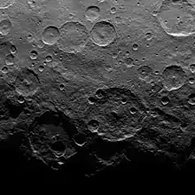 ![]() Dawn photo showing selected crater features, Sintana crater is on top | |