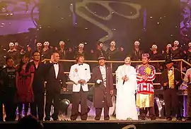 In December 2003, she was invited to perform at 2003 Japan and ASEAN Pop Stars Dream Concert 2003 (J-ASEAN Pops 2003), held in Yokohama, Japan, alongside top Japan and ASEAN artists, including THE BOOM, You Hitoto, INSPi, Leonard Eto, Yuri Chika, Hiroshi Takano and Hideki Kurosawa from Japan.[48] While ASEAN artists including Hans Anwar & Lo'Ryder (Brunei), Preap Sowat (Cambodia), AB Three (Indonesia), Alexandra (Laos), Lay Phyu & Iron Cross (Myanmar), Jolina Magdangal (Philippines), Tanya Chua (Singapore), Briohny (Thailand) and Lam Truong (Vietnam).[48] For the concert, a special song was composed by a Japanese composer, Kazufumi Miyazawa with lyrics by a Singaporean lyricist, Dick Lee entitled, Treasure the World. The same song was also sung by each singer from each participating country in their native languages, where Siti's version which was in Malay, entitled Dunia Milik Kita was also performed for the first time during the event.[48]