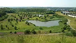 Skjoldhøjkilen is a recreational and natural site, in the district of Brabrand in the western part of Aarhus in Denmark. It stretches westwards from Hasle Hills, like a wavy green strip of meadows, small lakes and woodlands. It is 3.5 km long and just as Hasle Hills, it is administered by the self-governing institution 'Hasle Bakker'.[1]