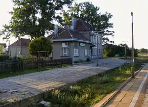 Skorzewo railway station is a railway station serving the village of Skorzewo, in the Pomeranian Voivodeship, Poland. The station is located on the Nowa Wieś Wielka–Gdynia Port railway. The train services are operated by SKM Tricity.