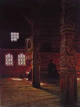 When Patriarch Nikon of Moscow launched his reform of the Orthodox Church in 1656, he restored the withershins ritual movement. This was among the changes that led to a schism (raskol) within Russian Orthodoxy, between those who accepted the reforms and the Old Believers, who preserved instead the "ancient piety" derived from indigenous Slavic religion.[69] A large number of Russians and ethnic minorities converted to the movement of the Old Believers, in the broadest meaning of the term—including a variety of folk religions—pointed out by Bernshtam, and these Old Believers were a significant part of the settlers of broader European Russia and Siberia throughout the second half of the seventeenth century, which saw the expansion of the Russian state in these regions. Old Believers were distinguished by their cohesion, literacy and initiative, and constantly emerging new religious sects tended to identify themselves with the movement. This posed a great hitch to the Russian Orthodox Church's project of thorough Christianisation of the masses.[70] Veletskaya highlighted how the Old Believers have preserved early Slavic pagan ideas and practices such as the veneration of fire as a channel to the divine world, the symbolism of the colour red, the search for a "glorious death", and more in general the holistic vision of a divine cosmos.[71]
