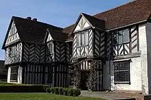 Richard's son, also named Richard, was born in 1553. He married Margaret Hall (d. 22 December 1573[4]) on 17 August 1568,[4] the young widow of Richard Greswolde with whom she had two children; Henry and Thomas Greswolde. She had three children with Richard Smalbroke; Robert, Joan and Richard Smalbroke Jnr.[5] Their son named Richard died at a young age on 13 October 1573.[4] Following the death of Margaret in late 1573, Richard remarried to a woman named Elizabeth Kinnersley,[6] with whom he had no children.[3] In 1590, Richard built Blakesley Hall on farmland he owned in Yardley, which is indicated by his initials inscribed above the doorway.[7] The family farmed at the hall and had other buildings in the surrounding area which were lost over time. Throughout the 16th century, the family kept detailed logs of the family accounts, documenting the way the family estate was built up.