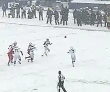 The Snow Bowl, also referred to as Snowvertime,[1] was a National Football League game played on December 10, 2017, between the Indianapolis Colts and Buffalo Bills at Highmark Stadium (then named "New Era Field") in Orchard Park, New York. It is notable for being held in the midst of a heavy lake-effect snow storm that ultimately dumped 16.7 inches (42 cm) of snow in Orchard Park, with 8 to 9 inches (20 to 23 cm) falling during the game alone.[2] The Bills won the game in overtime and improved to 7–6 on their way to snapping the franchise's 17-year playoff drought, while the loss for the Colts, who had already clinched a losing season, officially eliminated them from playoff contention.[3]