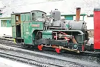 Built specially for the line in 1895 and 1896, Nos. 1 to 5 were manufactured by the Swiss Locomotive and Machine Works of Winterthur. The first locomotives cost £1,525 (equivalent to £187,402 in 2021).[10] Nos. 1 to 3 were delivered before the line was open and used on construction work. On at least two occasions, trials have been made on oil burners on Nos. 2 to 5, the latest being on No. 2 in the late 1990s.