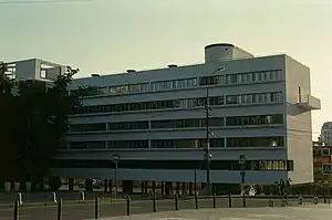The Social Condenser has also antithetically informed deconstructivist architecture as contemporary architects seek to unravel the determinism of the constructivist style in favour of more fragmented structures. While Social Condensers sought to influence human behaviour through considered design, the deconstructivist buildings of today engage just one design tactic; “a simple and random morphological gesture that removes sense from form”.[14] This lies in opposition to the functional nature of the Soviet Social Condensers which were actively designed to inspire collectivism.