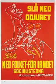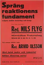 - ↑ Flyg believed that Stalinism would be the worst turnout during the Soviet fight against Hitler. Flyg believed that Hitler's brand of socialism would be better than Stalinism, and fully embraced Nazism; except for the antisemitism. Flyg's successor, Blom, would become the leader of a neo-Nazi party.