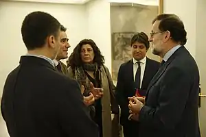 ![]() Former President of Spain and People's Party, Mariano Rajoy, receiving managers of SCC. From left to right: Óscar Uceda, Álex Ramos, Miriam Tey, José Rosiñol and Mariano Rajoy. | |