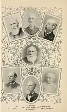 The Society of Montana Pioneers was founded on September 11, 1884, in Helena, Montana, to honor and document the histories of Montana pioneers who were resident in the territory at the time it became a Montana Territory, May 26, 1864.[1] In 1909, the society changed its membership rules to admit pioneers who were resident the territory prior to December 31, 1868.[2] In 1899, the society boasted 1536 active members out of a one time total of 1808.[3] The society did not consider individuals who were assigned to Montana on military duties, individuals who were deemed outlaws such as Henry Plummer of Bannack, or Indians as eligible for membership in the society.[4]