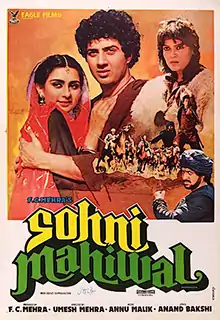Sohni Mahiwal (Hindi: सोनी महिवाल, Russian: Легенда о любви, romanized: Legenda o lyubvi) is a 1984 Indo-Russian historical romance drama film based on the story of Sohni Mahiwal, directed by Umesh Mehra and Latif Faiziyev (Russia), produced by F. C. Mehra. It stars Sunny Deol, Poonam Dhillon and Zeenat Aman in pivotal roles.[2] The writers were Shanti Prakash Bakshi and Javed Siddiqui. The music was scored by Anu Malik. Choreographer P. L. Raj. The film was a commercial success with a net collection of 3.2 crore.[3]