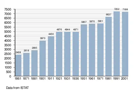 - ↑ "Popolazione Residente al 1° Gennaio 2018". Italian National Institute of Statistics. Retrieved 16 March 2019.